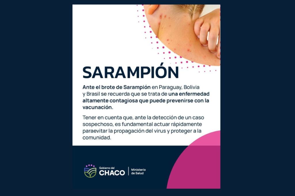 El Ministerio de Salud del Chaco confirmó que no se registran casos de sarampión en la provincia, aunque advirtió sobre la necesidad de mantener altos los niveles de vacunación por la cercanía con países donde aumentaron los contagios, como Paraguay y Bolivia.